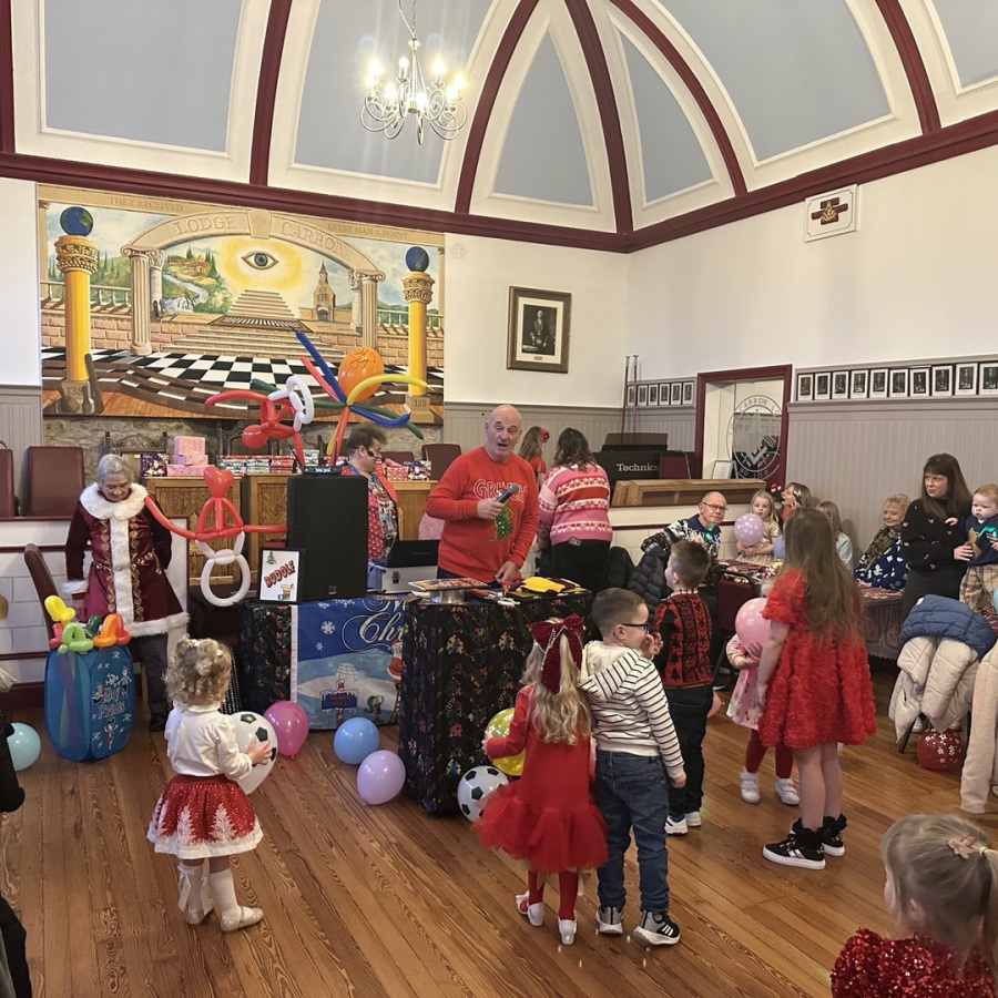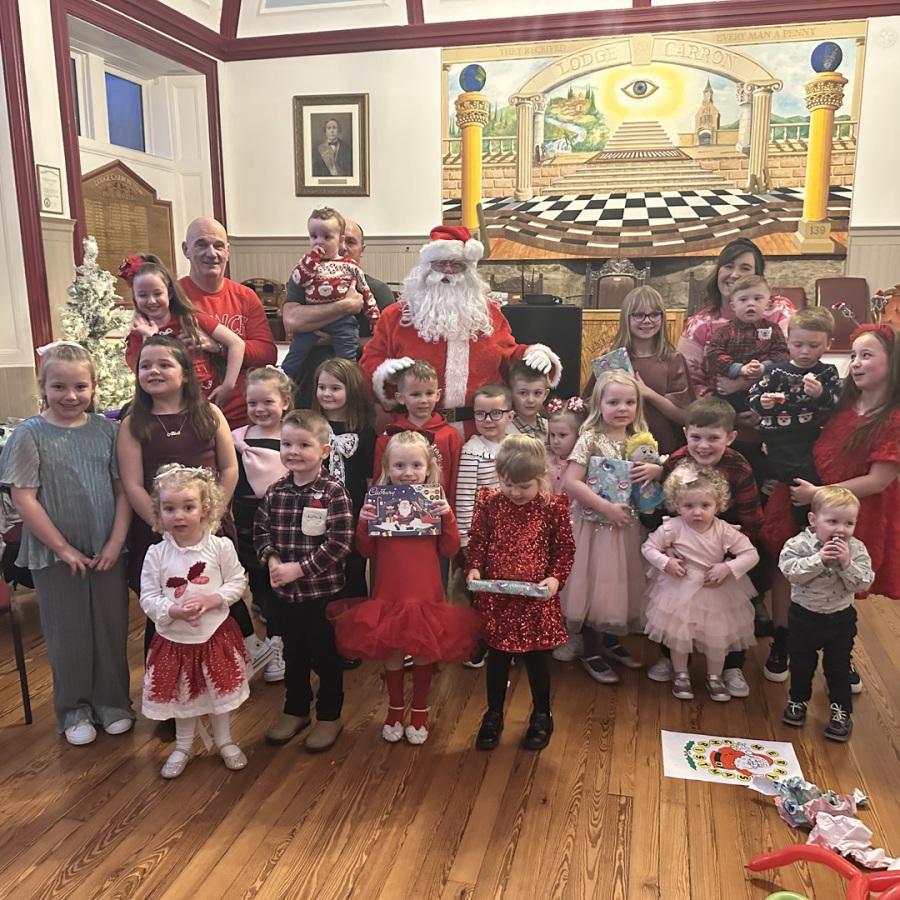 On Sunday 21st December 2025 Lodge Carron No.139 held their Annual Children's Xmas Party within the Lodge Temple. RWM Brother Jim MacAulay,PM's,& Brethren joined in the festivities with the parents and grandparents, also on hand and on his travels was Santa who made a flying visit to the Lodge to dispense presents to the children. The Grinch was also present who was given a warm welcome to the proceedings. Many thanks to Brother Charlie Macvicar for doubling up as Santa & the Grinch, also to Gladys Chucklebutty who kept the party going. A welcome buffet was also provided by RWM Brother Jim MacAulay and the Lodge. Photos provided was by kind permission from the parents of the children.