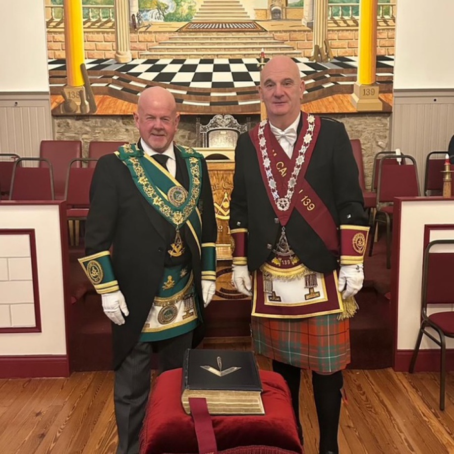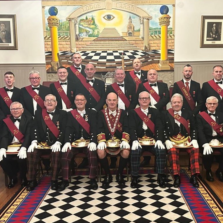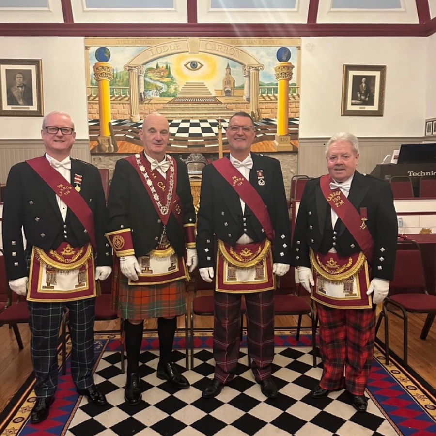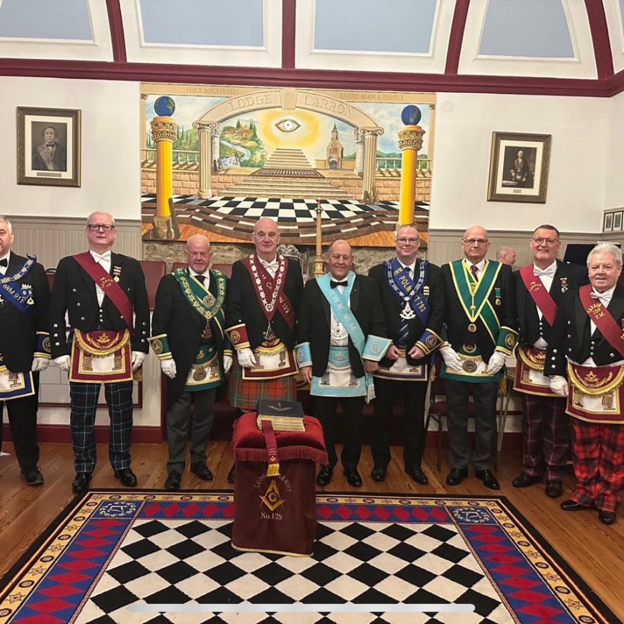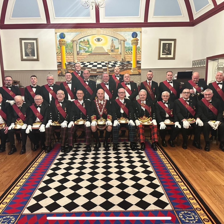 On Friday 12th December 2025 the Annual Installation of RWM Brother Jim MacAulay and his Officebearers took place in the Masonic Temple Stenhousemuir. Installing Masters Tam Meikle, David AD Duncan, and Alan B. Reid carried out to a very high standard the Ceremony of Installation. RWPGM Brother Stuart Stirling and his Officebearers were also in attendance.